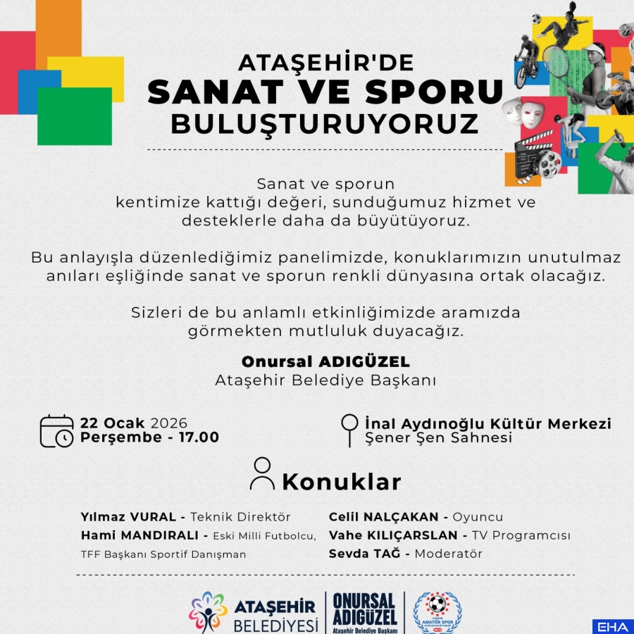 Ataşehir, sanat ve sporu buluşturan renkli bir panele sahne olacak. Ataşehir Belediyesi’nin organize ettiği panelde bir araya gelecek sanat ve spor dünyasının ünlü isimleri eğlenceli anılarını paylaşacaklar.